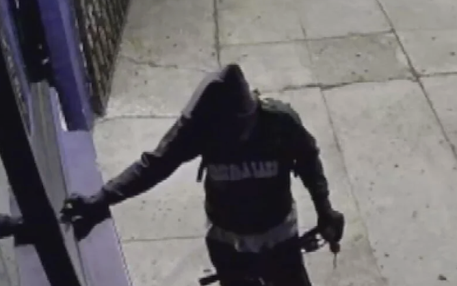 A bicyclist is caught on camera shattering glass and breaking into several businesses sometime early Thursday morning in Valley Village and North Hollywood. Six businesses in all were burglarized in the morning hours, and the Cara Vana coffee shop in North Hollywood appears to have been the first business targeted. Security video shows a person ride up to the business on a bike and use a small device to break the window. When it didn't shatter, the suspect came back a few minutes later and tried again. "He had a mask on, on his bike, backpack, so obviously he knew what he was doing," Kim Lopez of Cara Vana said. She said the coffee shop is a family business, and now they have to pay thousands of dollars to get the glass fixed. About one hour later, a mile and a half away on Burbank Boulevard, a burglar on what appears to be the same bike breaks into a sushi restaurant, stealing cash and leaving a mess. David Bitton has owned Le Sushi for decades, and found the mess when he arrived to work. "All the glass all over the floor, we called the police, they respond right away," he said.