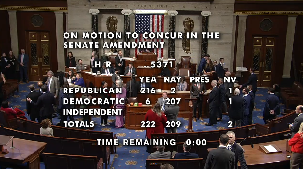 This week, on November 12, 2025, we passed the same clean CR to open the government that we passed weeks ago, funding critical programs like WIC, SNAP, and Child Nutrition, paying federal workers, service members, and air traffic controllers, and supporting veterans' health care and benefits. Yet once again, the majority of House and Senate Democrats voted against it. Thankfully, the political pressure from their own party did not prevent a few reasonable Democrats from coming to the table this week and voting to reopen the government.