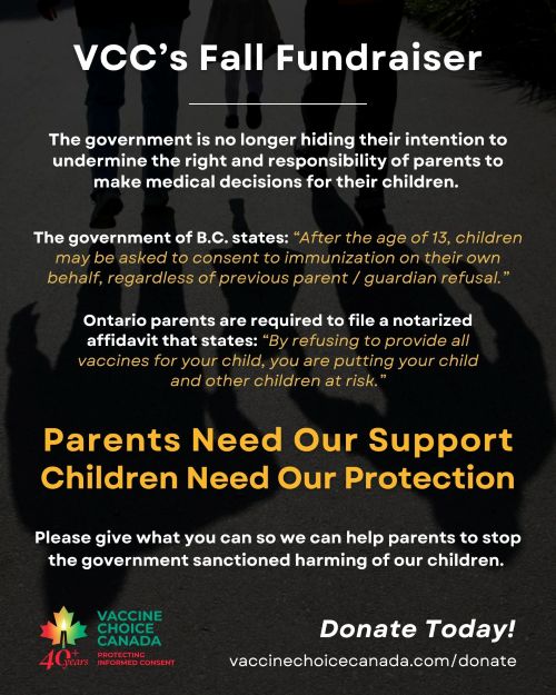 Thank you for supporting the work of Vaccine Choice Canada. With your assistance we will continue to inform parents, challenge tyranny, and save children.