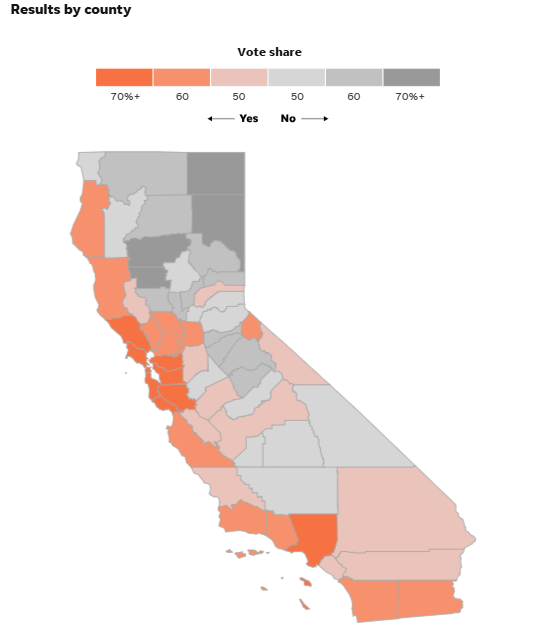 It meant winning in longstanding Democratic strongholds like LA and San Francisco. But it also meant flipping a lot of Trump leaning voters in traditionally rural Republican counties.