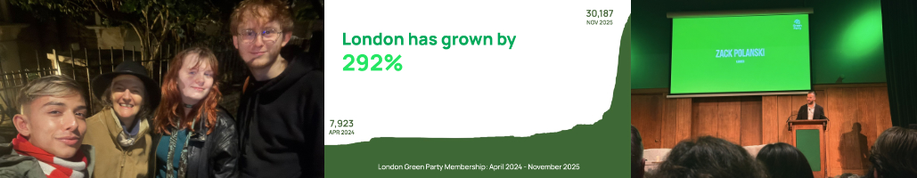 Saturday was London Green Party Conference day. We enjoyed speeches from Mothin Ali and Zack Polanski, as well as a number of panels, trainings, and fringe events. We also learnt that our membership in London has grown by 290% since last year's general election (see chart above). Thats 256 double decker buses worth of new Green London members!