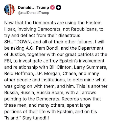 After YEARS of tampering and destroying evidence to frame him for the EPSTEIN HOAX, President Trump is punching back – demanding AG Pam Bondi and the DOJ to investigate: