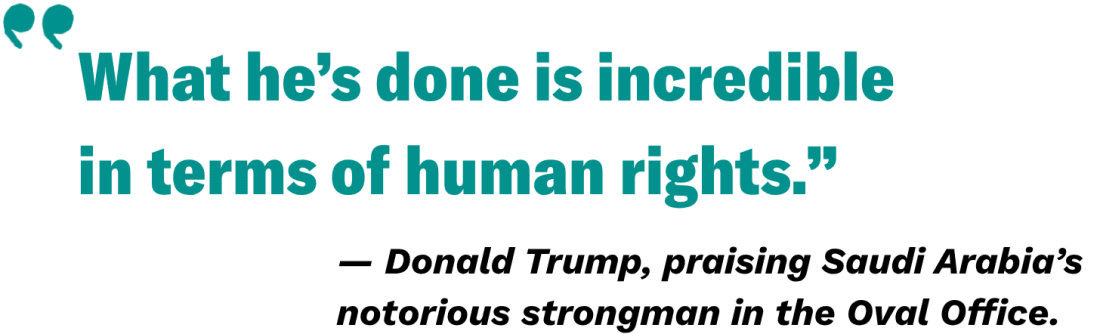 What A Day: Trump on Khashoggi: ‘Things happen’Donald Trump shrugged off the murder of a journalist, and gave the Saudi crown prince red carpet treatment.RED CARPET FOR RIYADHTrump criticized a murdered journalist as “controversial.” That’s no justification for his assassination, the journalist’s widow told What A Day.