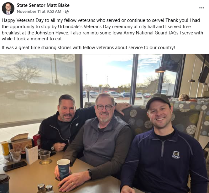 Thank You to Iowa’s Veterans: Veterans Day, which took place earlier this month on November 11, is a time to remember the dedication and sacrifice of the men and women who signed up to serve our country. Thank you to the many thousands of brave and committed Iowans who put their lives on the line to protect our home.