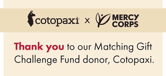 Our generous partner, The Cotopaxi Foundation, has contributed $70,000 to inspire compassionate people like you to MATCH their gift. Will you make a tax-deductible donation today that will go TWICE as far to deliver clean water, food, economic opportunity, and more peaceful tomorrows in 35+ countries?