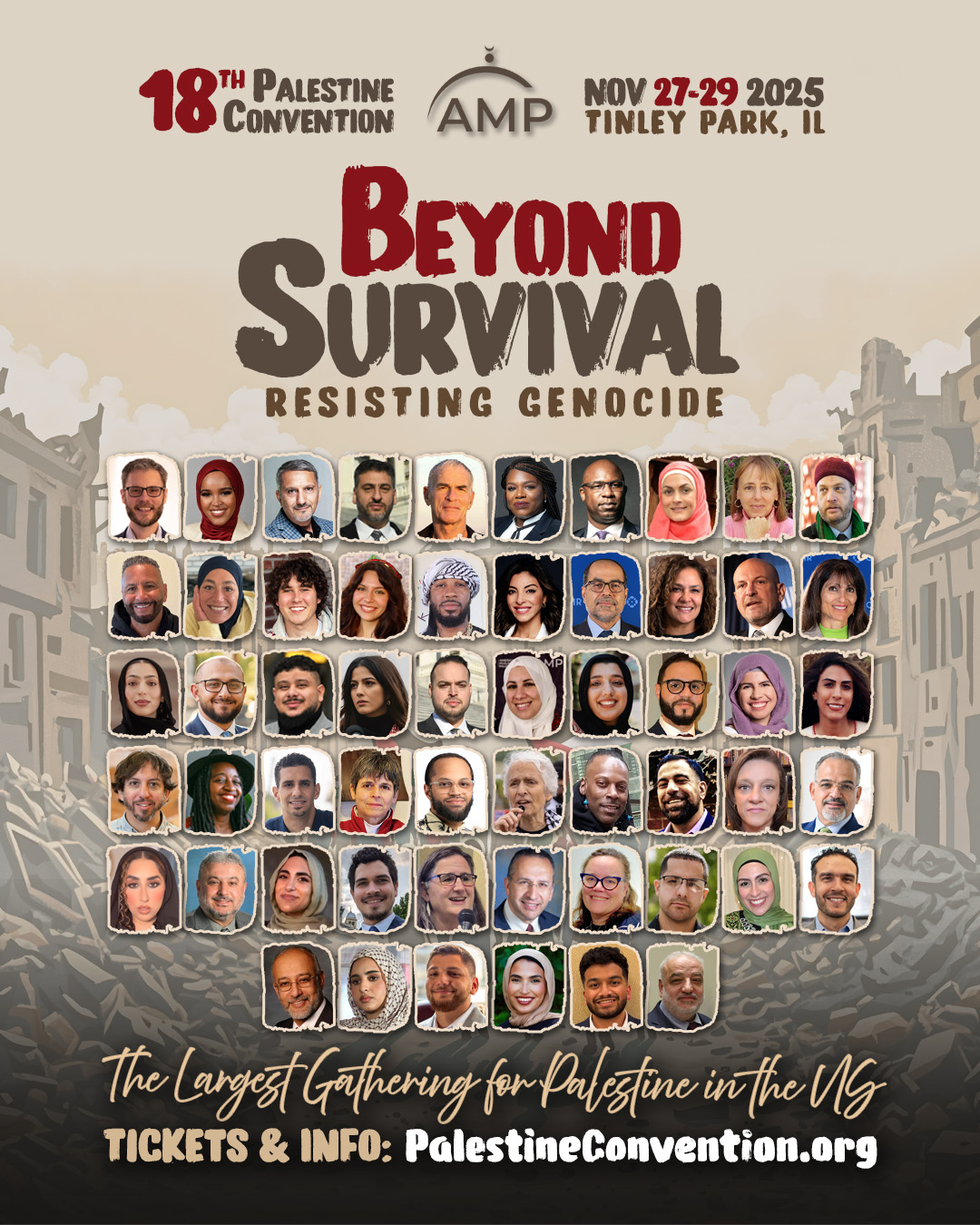 The convention program is now ready and waiting for you! Dear Email, This year’s largest gathering for Palestine in the U.S. is NEXT WEEK! Featuring an impressive lineup of speakers from across the country, including academics, influencers, leaders, activists, experts, and more, this year’s convention is set to be one for the history books. This major event is designed with everyone in mind! From children as young as one year old to high school students, college students, and community leaders, the program is designed to engage every member of the community in enjoying and participating in the movement for justice in Palestine. Ceasefire or not, the genocide continues, and many are still asking what can be done to end the suffering of the Palestinian people. Let us gather, discuss, organize, and build our power. Use this as an opportunity to engage everyone in your family and community who is concerned about Palestine and the Palestinian people. Get your tickets today at PalestineConvention.org and join us next week in Tinley Park, IL. In solidarity, American Muslims for Palestine (AMP) |