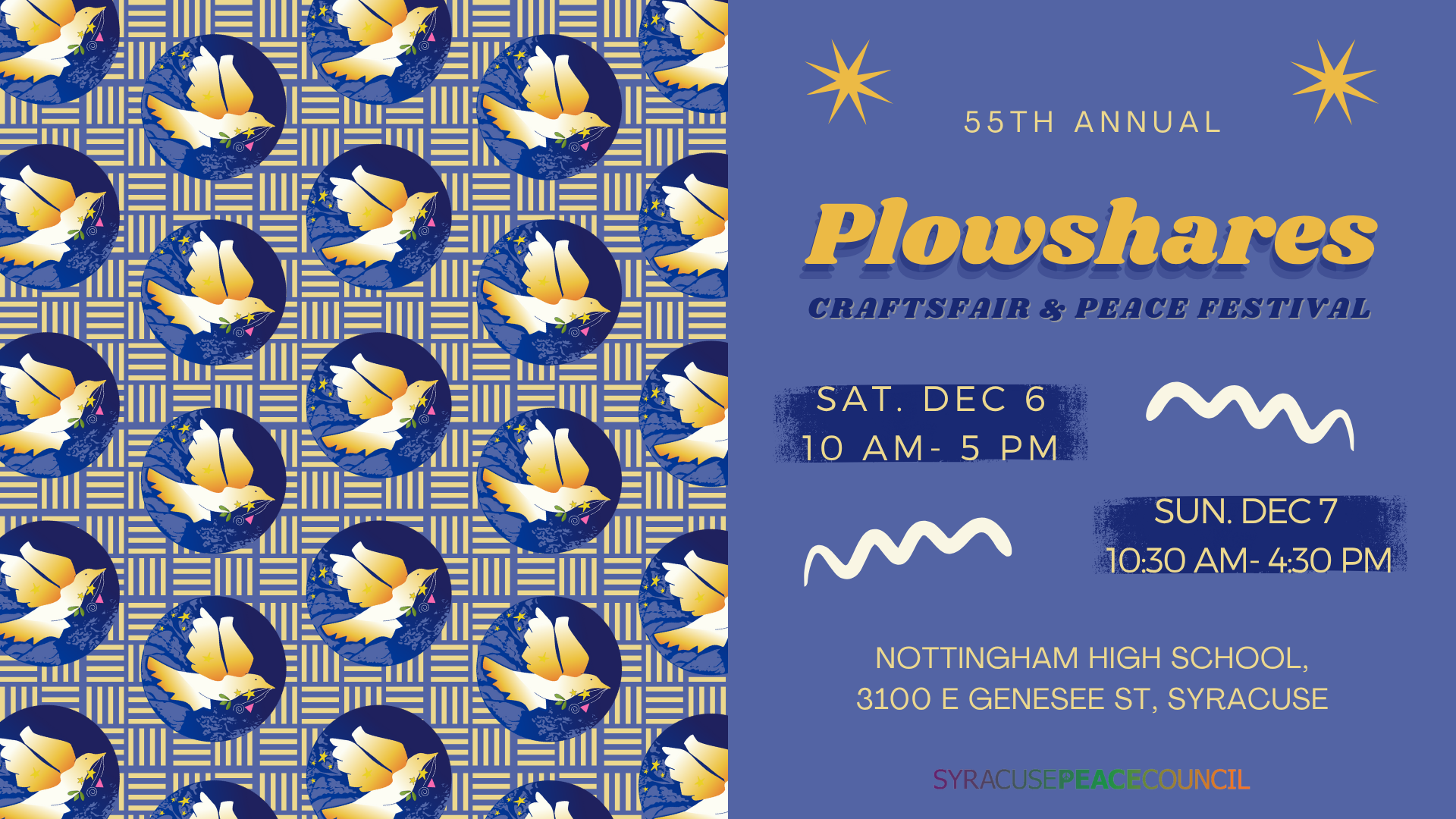 Featuring handmade crafts such as pottery, jewelry, clothing, art, and much, much more; performances from local musicians and dance troupes; and a silent auction with items from Central New York’s finest restaurants, shops, and entertainment, Plowshares is a two-day showcase of the kind of world we’re working to build: one where joy, peace, and environmental sustainability are in abundance.