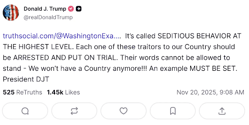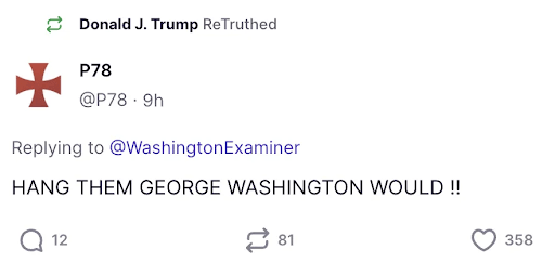 In response, the President went to his social media platform and retweeted messages calling for their hanging, adding his own decree that their actions were "SEDITIOUS BEHAVIOR, punishable by DEATH!"