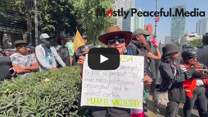 'SOS USA': Mexican protester asks Trump for help fighting the cartelsA protester thanked President Trump...is Mexico opening up to USA military help?Support bold independent journalism. Become a PolitiBrawl member today!MEXICO CITY, Mexico — November 20th is a national holiday in Mexico: Revolution Day. It marks the start of the country’s revolution in 1910 to oust Porfirio Díaz, who was in power for more than three decades at the time. While Díaz resigned from office in 1911, the revolution continued for another five years as different rivals and factions fought for control of the nation. The war featured many of Mexico’s famous heroes such as Emiliano Zapata and Francisco “Pancho” Villa. This Thursday, amid the significance of the date, anti-cartel and anti-President Claudia Sheinbaum protesters gathered at the Angel of Independence to march again in the aftermath of November 15th’s chaotic riot. While the crowd on Thursday was much smaller compared to the crowd from the previous Saturday, people in Mexico’s capital wanted to keep up the pressure on their government to do something about the cartels once and for all. While naturally most of the signs were written in Spanish, lambasting the “narco-government,” one woman held a sign written in English that read, “S.O.S USA[,] Sheinbaum’s ‘sovereignty’ is just a pretext to leave narco-politicians unpunished and to protect cartels.” A message from our sponsor (Piece continues below) Together with Natural Health Response [EXPOSED] Bigger than the Epstein Files?Dear Reader, After years of hype, the DOJ has officially dropped the Epstein investigation… And let countless unnamed conspirators off the hook. But now the deep state has an even bigger target. A secret that, if revealed, could cost them hundreds of billions in profit. RFK Jr and the Trump administration are now perfectly positioned to expose everything… But after what just happened with the Epstein files, we’re not taking any chances. We’re taking this opportunity to reveal everything in the first in the first 5 minutes of this video. Watch it here now while it’s still available online. P.S. The deep state secret revealed in this video is explosive and may bring down a lot of very powerful people. But it could also save your life. Learn the truth here now while you still can. (Piece continues below) Sheinbaum has stated multiple times that she will not allow the U.S. military on Mexican soil because Mexico is free, sovereign, and not for sale. Instead, she said the U.S. can offer intelligence and other means of support. The woman’s sign also said in Spanish, “Muera el narcoestado,” or “Death to the narco-state.” The protester went on to thank President Donald Trump for offering the use of the U.S. military to fight the cartels because the Mexican government is compromised. She further agreed Trump was right in designating the cartels as a foreign terrorist organization. There is some sentiment among Mexicans to let the U.S. come in to fight the cartels since the Mexican military has been unable to completely defeat them, but it is safe to say that many more Mexicans are against the idea, even if they do not like Sheinbaum or her approach to the cartels. While they don’t like the idea of the cartels having vast control in parts of the country, and the government by extension, many are wary about the U.S. getting involved given its war history with Mexico and recent actions during the War on Terror. What could end up happening is the Trump administration succeeding in cracking down on the drug trade in South America in countries like Venezuela and Colombia through military force and pressuring Mexico to finally get its act together, or else. You're currently a free subscriber to PolitiBrawl. For the full experience, upgrade your subscription. |