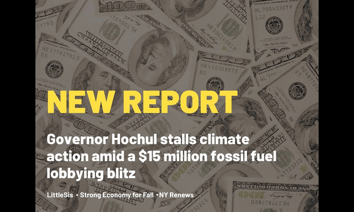 On November 18, the nonprofit public interest research group Little Sis, in collaboration with NY Renews and the Strong Economy for All Coalition, published a troubling report about a surge in lobbying money flowing from fossil fuel interests into lobbying against New York State’s climate laws and regulations. Over the past several years trade groups like the American Chemistry Council and utilities like Con Ed and National Grid have spent nearly $16 million with the outcome that the state legislature and particularly Governor Hochul have “dragged their feet on implementing laws and mandates.” We are seeing the impact of that spending as we struggle to ensure that the mandates of the Climate Leadership and Community Protection Act are carried out.