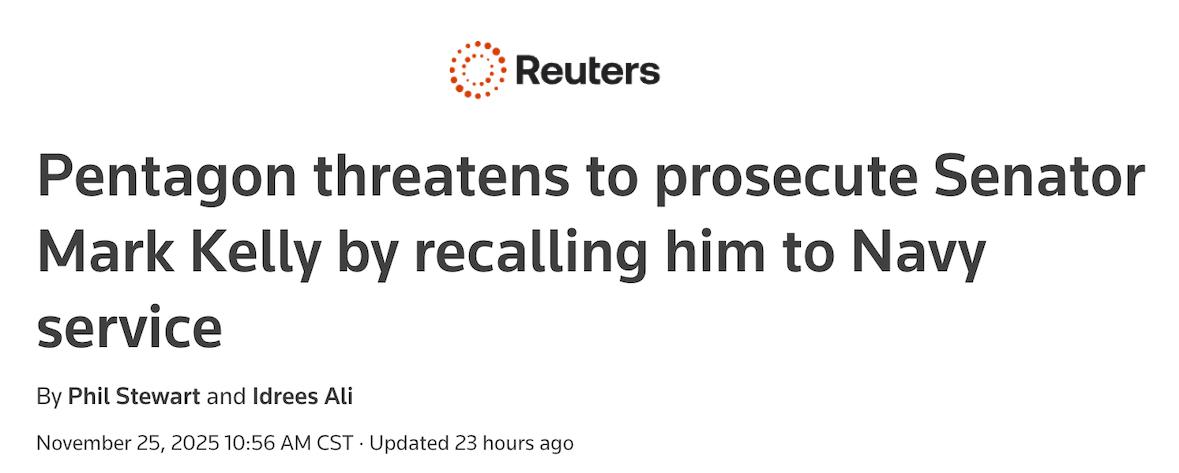 Sen. Kelly and the other patriots delivering this message did nothing wrong. What’s wrong is MAGA trying to intimidate us into silence. They are using the power and might of the United States government to target and persecute anyone who opposes them.