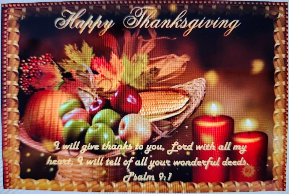 May God bless each of you on this Thanksgiving Day. Remember the brave men and women who protect our lives and liberty and cannot be with their families this Thanksgiving. Especially remember the family of Sheriff's Deputy Terri Sweeting-Mashkow and David Long, the locksmith, who succumbed to his injuries.