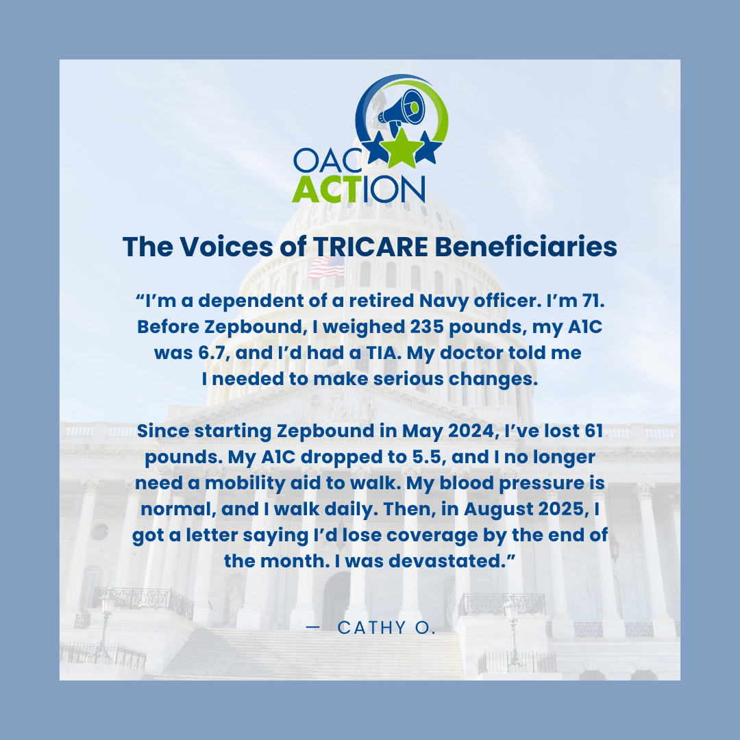 |  | Fight to Protect TRICARE Coverage TRICARE recently cut access to FDA-approved obesity medications for retirees and limited coverage for other beneficiaries. This decision puts military families’ health at risk. Join us in advocating for coverage that’s guided by science—not cost. Read the full article and take action! |