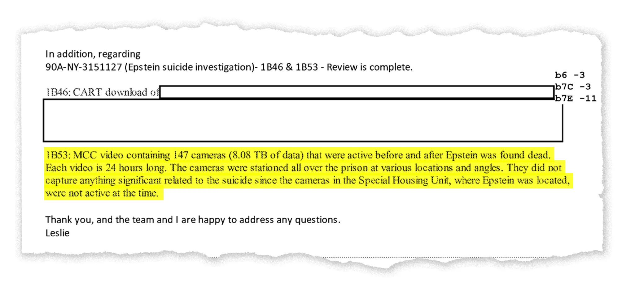 Bureau personnel also reviewed videos. According to an April 15 email, one of the videos was from the New York City jail where Epstein was found dead a month after his arrest in 2019 on sex trafficking charges. (The DOJ publicly released 11 hours of the prison video in July.)