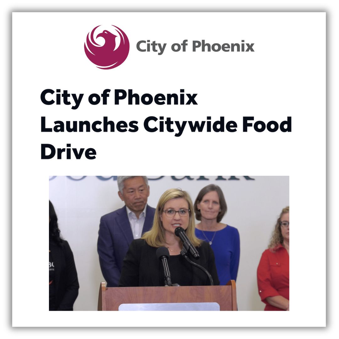 During the record-breaking federal government shutdown, the City of Phoenix launched a citywide food drive to help put food on the table for those facing food insecurity. Mayor Kate Gallego and everyone on our team would like to extend a special thank you to all those who responded to her call to action, donating food, money, or their time to help our neighbors in need. Phoenix has always come together during times of need, and this challenging time is no different. You can lend some support here.