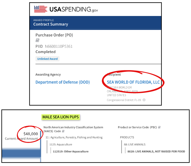 We’ve obtained hard evidence that the Navy acquired animals from the infamous amusement park disgraced by the Blackfish scandal, and sent others there to breed even more marine mammals into a life of taxpayer-funded experimentation.