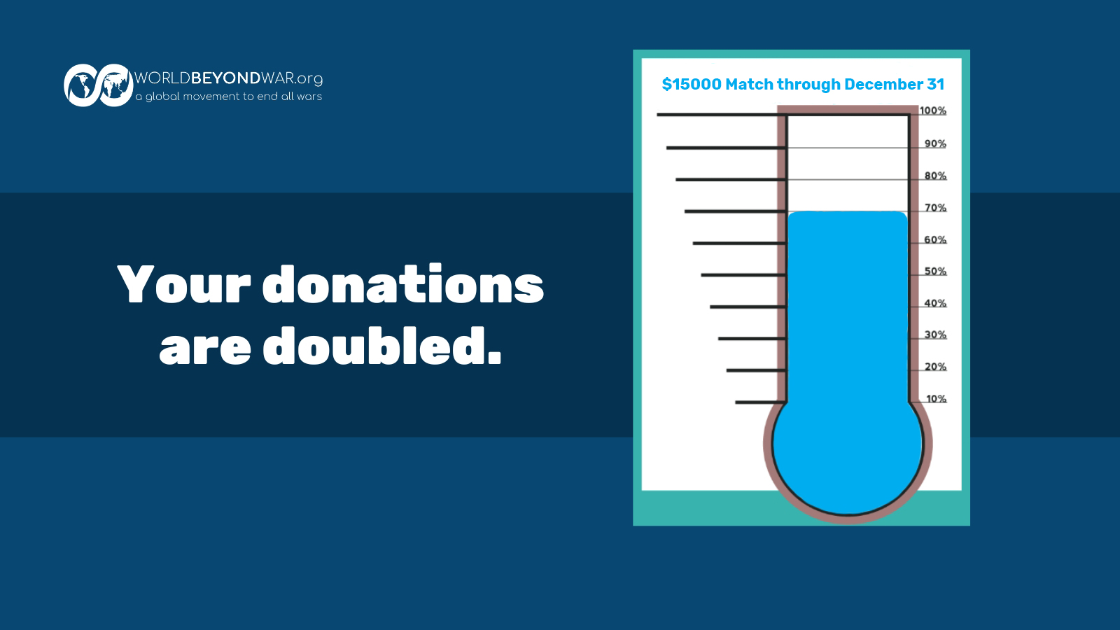 Giving to peace-building organizations like World BEYOND War is a direct denunciation of the expanding military industrial complex across the world.