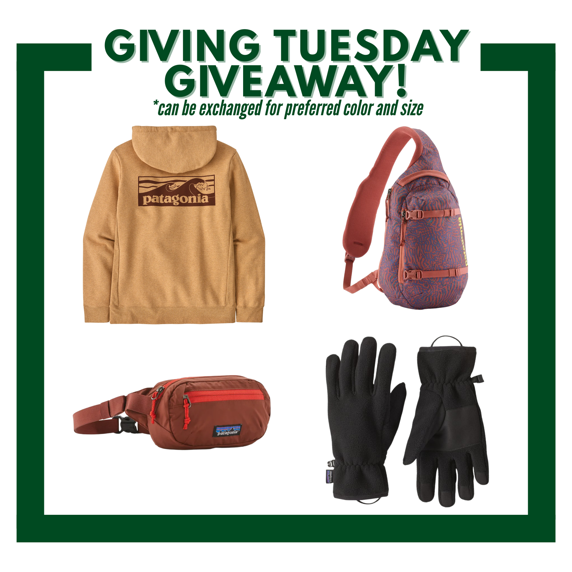 🎒What: Win a free Patagonia hoodie, sling bag, hip pack, and fleece gloves (that can be exchanged for your preferred size and color) with a gift of $100 or more to OLCV for Giving Tuesday! Your will also be matched by a generous donor. |