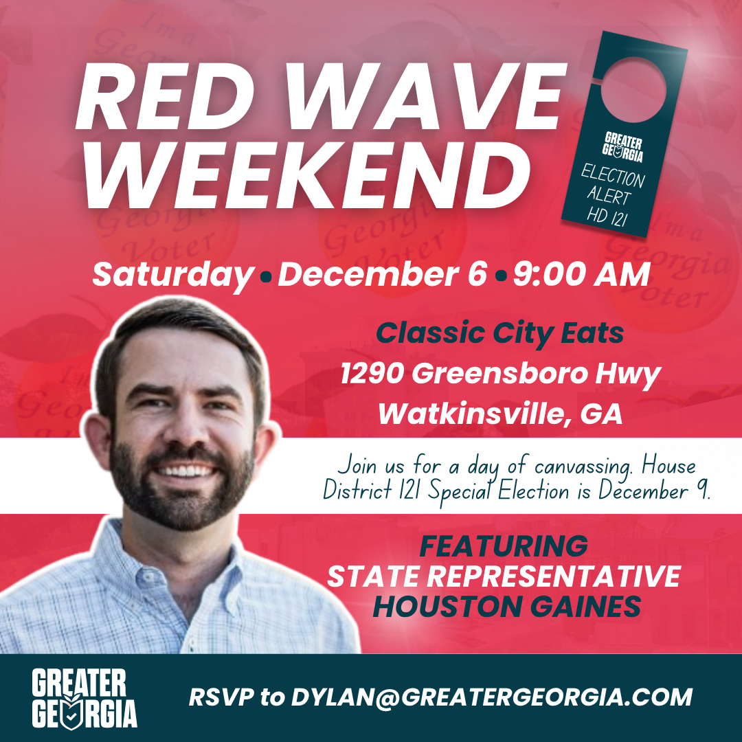 In House Districts 23 and 121, Election Day is December 9. These elections will shape the makeup of our legislature heading into 2026, and they are exactly why Greater Georgia exists: to mobilize year round, on the ground.