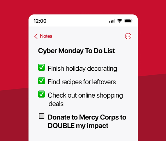 Thanks to a generous matching gift of $70,000, your gift will go 2X as far to deliver food, clean water, job opportunities, and a more peaceful tomorrow to people around the world. Check your gift off the list now ▸