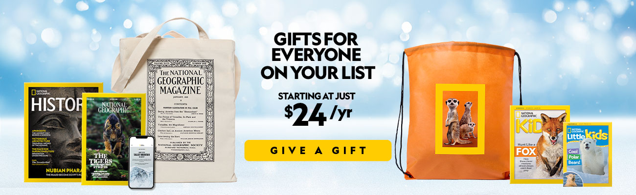 Your gift options include: • Annual print and digital subscription to National Geographic magazine • PLUS: 2 bonus issues • PLUS: Up to four bonus gifts |