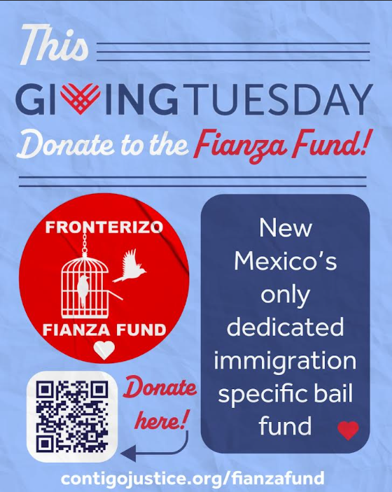 That’s why this Giving Tuesday, we’re asking you to donate to the Fronterizx Fianza Fund (Bond Fund) New Mexico’s only dedicated immigration-specific bail fund. Under the leadership of Contigo Immigrant Justice, For years, this crucial, volunteer-run program has paid immigration bonds to free people from unjust detention. The fund is now part of a powerful model that combines community bond support with direct legal representation, ensuring that no one remains detained simply because they cannot afford to pay.