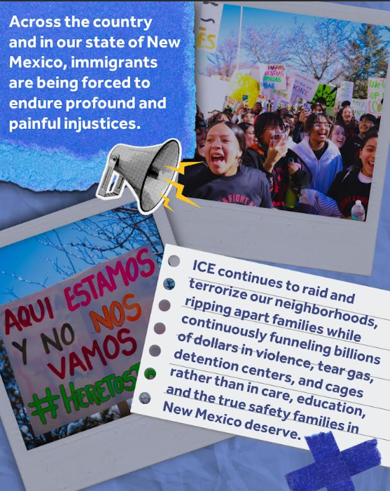 Our immigrant communities are once again facing a moment of deep injustice. Across the country and here in New Mexico, immigrants are being brutally targeted and dehumanized. ICE continues to raid and terrorize our neighborhoods, and billions of dollars are being invested in violence, tear gas, detention centers, and walls rather than in care, education, and safety.