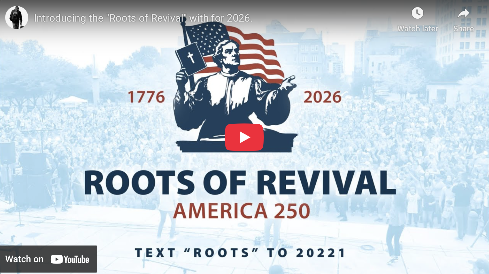America’s history is extraordinary—born from deep Christian roots and shaped again and again by powerful moves of God. In 1776, our Founders declared that our rights come from our Creator, not from any government. We stamped “In God We Trust” onto our currency. We pledged ourselves as “One Nation Under God.” But today, countless Americans—especially the next generation—are being cut off from the truth of our spiritual heritage. And that’s exactly why we’re launching the Roots of Revival Tour as we approach America’s 250th anniversary in 2026. This tour has one bold mission: To remind America that God’s hand has been on this nation from the very beginning—and to ignite a fresh move of His Spirit today. |