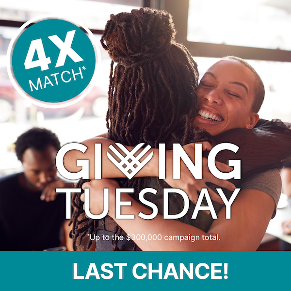 This is your final opportunity to have your Giving Tuesday gift matched 4X, up to the campaign total of $300,000. Don’t let the clock run out on making a bigger impact! |