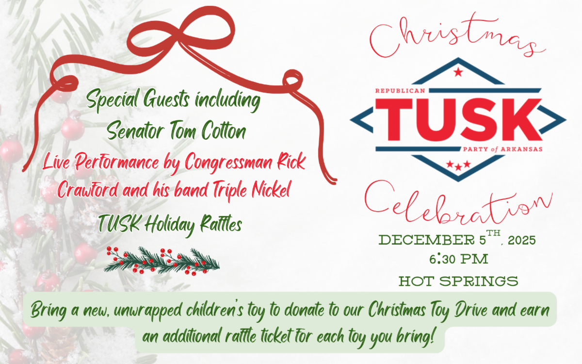We have an incredible evening planned — featuring special guest Senator Tom Cotton and a live performance by Congressman Rick Crawford’s band, Triple Nickel!