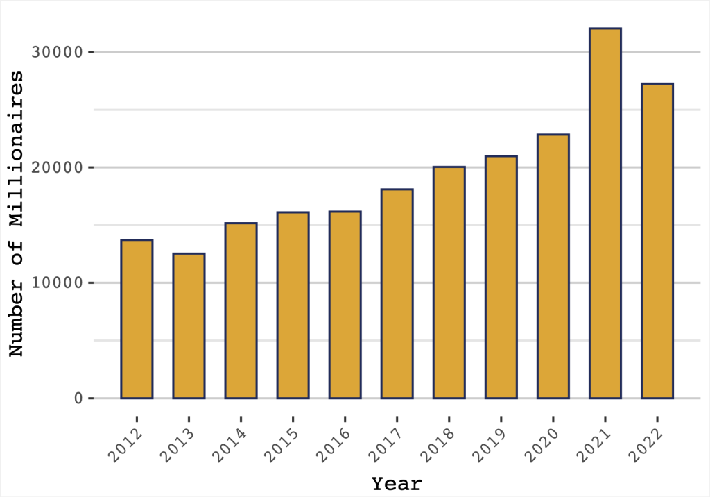 Figure 3: Number of IRS tax returns in Massachusetts with an AGI of $1M+ (2012-2022)Source: IRS Statistics of Income program