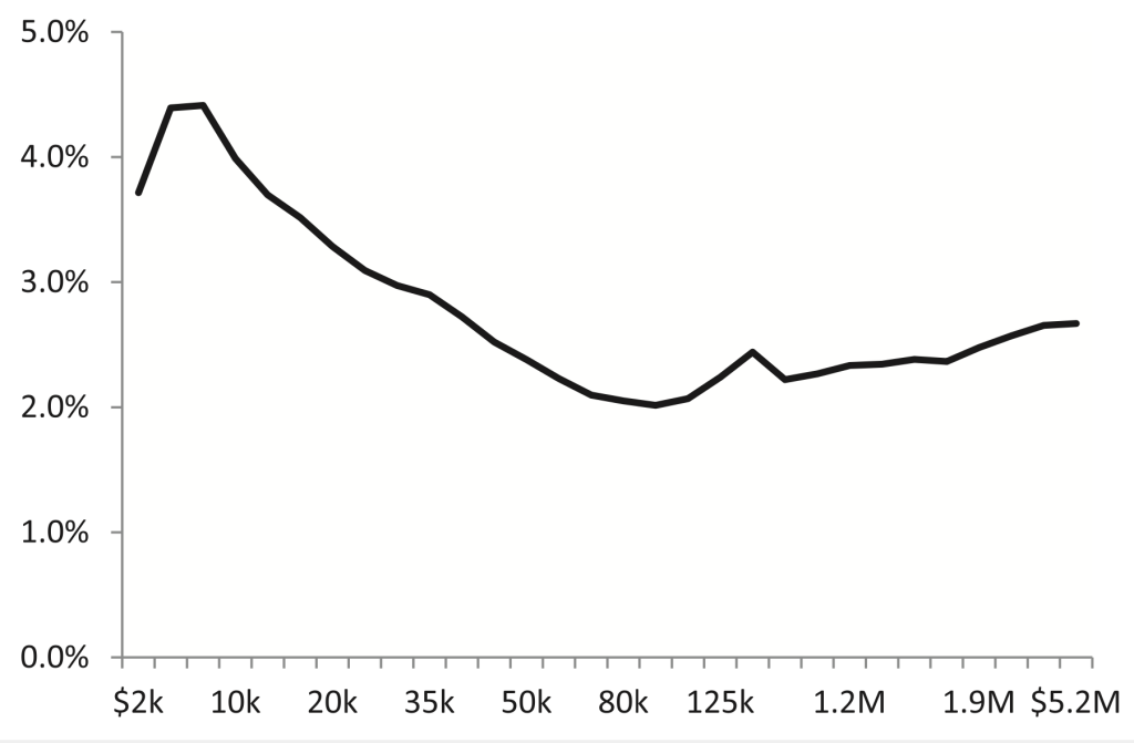 Figure 5: Young et al. (2016) Estimates of Migration Rates by Income Level, 1999 to 2011Source: U.S. Department of the Treasury, IRS microdata, 1 percent sample of all tax filers (N = 24 million) and 100 percent sample of people making $1 million or more (N = 45 million).