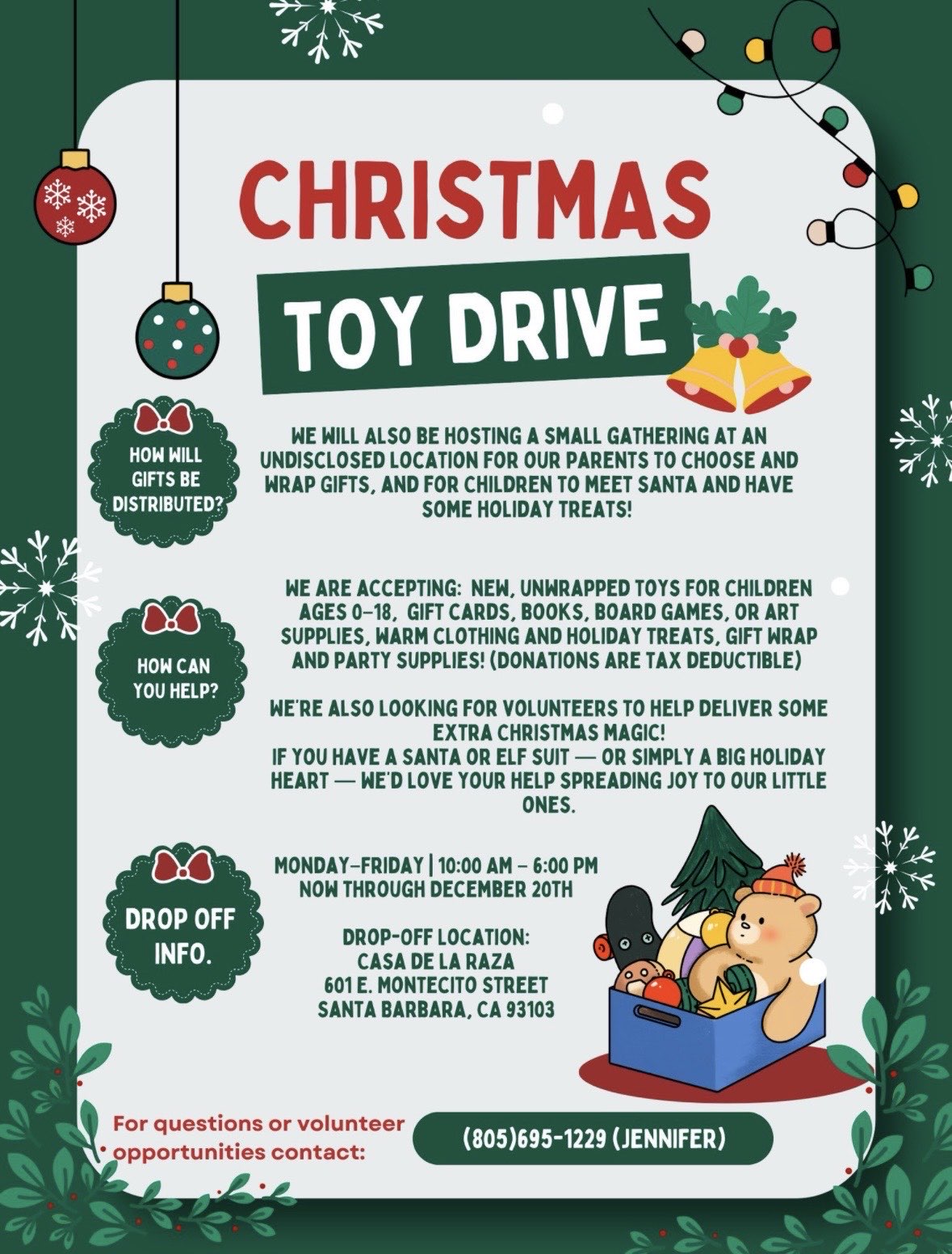 Casa is collecting new, unwrapped toys to distribute to local children before the holidays. If you’re able, please drop off a toy during their open hours or volunteer some time to help with sorting and distribution.