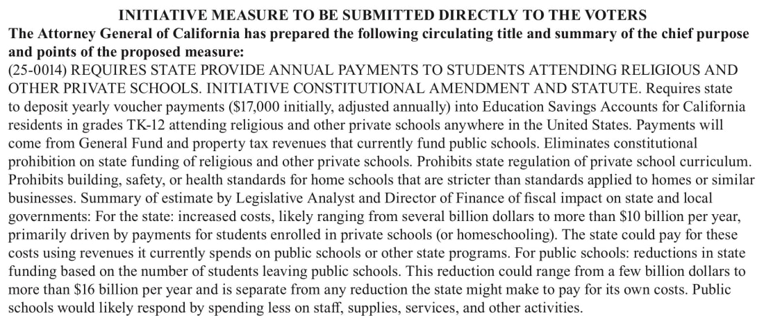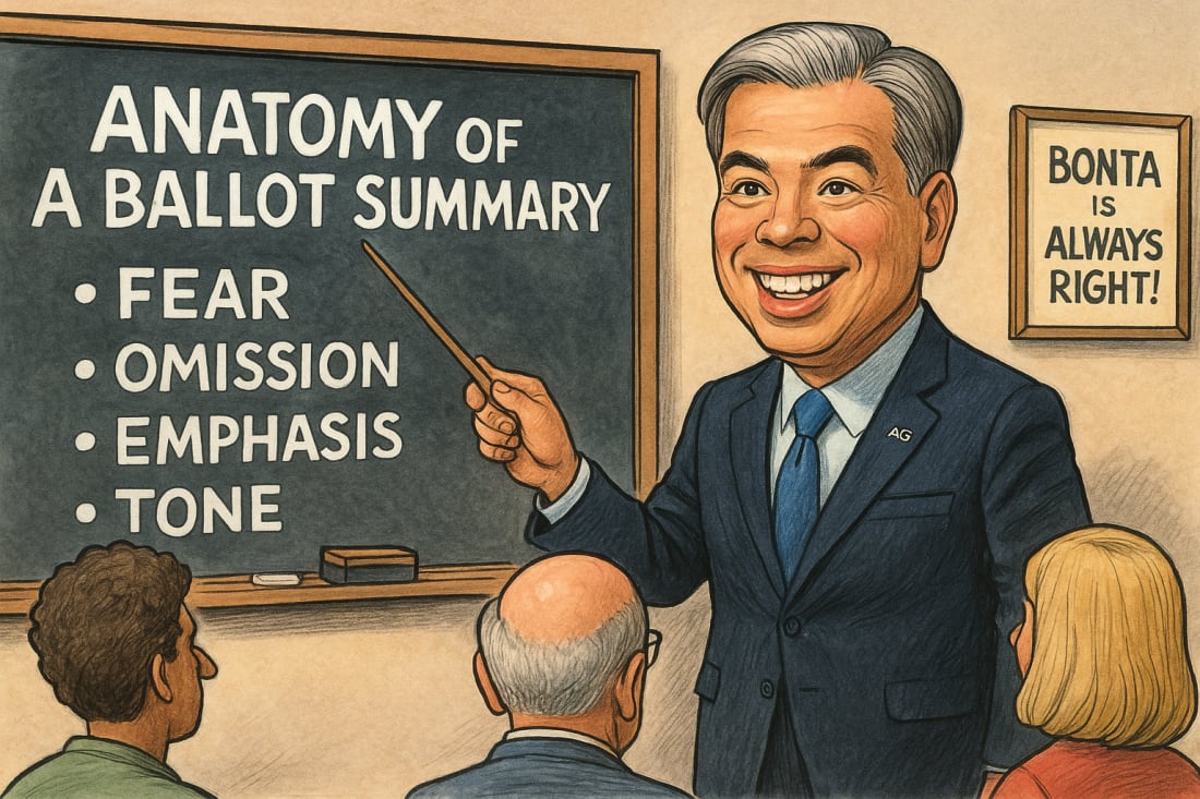This content is available for free to all subscribers. But you really should consider a paid subscription. This unlocks our afternoon e-mails, our Saturday “What is Jon Reading” e-mail, and analysis on breaking news. Normally a subscription is a modest $7 a month or just $70 for the year. Attorney General Rob Bonta’s Ballot Language Manipulation Exposes a Serious Constitutional FlawA Longstanding Abuse of Power, Now Repeated By the Current Attorney GeneralThe other day I was going through my e-mails and read my latest “Netter News” — an email that my friend Mike Netter sounds out with items of political interest. In this case Mike was encouraging people to print out and sign some ballot measure petitions. One for requiring Voter ID, another was the Local Taxpayer Protection Act to Save Prop. 13, and the last the California School Choice Act. You can read the e-mail here. Being somewhat familiar with the first two I clicked to view the petition for the last one. What I ended up reading was just an egregious use of the power of the Attorney General to write pretty much any title, summary and question for a citizen-initiated ballot measure… The Constitutional Problem Hiding in Plain SightAttorney General Rob Bonta is not the first California Attorney General to tilt ballot titles and summaries, nor is he unique. But he is the most recent, and his handling of the “Children’s Educational Opportunity Act of 2026” spotlights a deeper problem that predates him. For decades, Attorneys General have shaped the political terrain by slanting the very first words voters read about statewide ballot measures. Kamala Harris did it. Xavier Becerra did it. The current Attorney General is doing it now. For many voters, these short official summaries are the only information they will ever see before marking a ballot. The real issue is that the California Constitution allows an elected partisan officeholder to control the official description that millions of voters rely on. This structural flaw in California’s governing system has reached a point where it cannot be ignored. California’s initiative process is supposed to give citizens a direct voice in lawmaking, with the Attorney General serving as a neutral explainer. Instead, the office has evolved into a gatekeeping role with enormous power over public perception. In this case, the handling of the school choice initiative demonstrates how easily that authority can be used to pre-shape public opinion. The official language goes well beyond a mere summary of the measure. It frames it, tilts the debate, and casts it in the most contentious terms before supporters have any meaningful chance to make their case. A leading cause, by the way, for proponents of great measures to abandon their efforts. A Measure Described Through the Narrowest Possible LensThe proposal itself is straightforward. It would create a $17,000-per-year Education Savings Account for each eligible student, funded from existing state and local education dollars rather than from any new tax. Parents could use the funds to send their children to religious or other private schools anywhere in the United States. The measure would also repeal California’s constitutional ban on public funding for religious schools and prevent the state from imposing curriculum rules on private institutions or applying stricter building and safety standards to homeschools than to ordinary residences or similar businesses. Clearly this is an opportunity for families trapped in underperforming districts to gain options already available in Arizona, Florida, and other states. The Attorney General’s official title frames the measure in a very different way. It reads: “REQUIRES STATE PROVIDE ANNUAL PAYMENTS TO STUDENTS ATTENDING RELIGIOUS AND OTHER PRIVATE SCHOOLS. INITIATIVE CONSTITUTIONAL AMENDMENT AND STATUTE.” With one stroke, the emphasis shifts from parental decision-making and educational opportunity to government payments for religious institutions. Voters encountering this language in all capital letters at the top of the voter guide are steered toward skepticism before they learn anything else about the proposal. The wording may be technically defensible, but it is framed in the most politically charged way possible. How the Summary and Fiscal Analysis Reinforce the TiltThe summary that follows reinforces that initial impression. It highlights the repeal of the constitutional provision regarding funding for religious schools, the removal of state oversight of private curricula, and the ability of parents to use the funds outside the public system. It does not mention the initiative’s stated purpose, which is to respond to what many describe as an educational crisis in California. It does not acknowledge the potential benefits for low-income families or the broader context of school choice programs that already operate in other states. Those omissions amplify fear while stripping away any sense of opportunity. Below the summary appears the fiscal analysis from the Legislative Analyst’s Office and the Department of Finance. The study warns that the state would face increased costs ranging from several billion dollars to more than $10 billion per year, paid for with revenue now used for public schools or other state programs. It also states that public schools could face funding reductions of more than $16 billion annually, which would likely lead to staff and service cuts. These figures outline real fiscal scenarios, yet the presentation is constructed to leave voters with only one takeaway: this supposedly endangers public education. There is no reference to how states with similar ESA programs have managed enrollment adjustments. A Pattern That Has Emerged BeforeThe use of ballot language to shape outcomes is not limited to initiatives the Attorney General opposes. It also appears in measures he favors. A recent and telling example is Proposition 50, the statewide ballot m