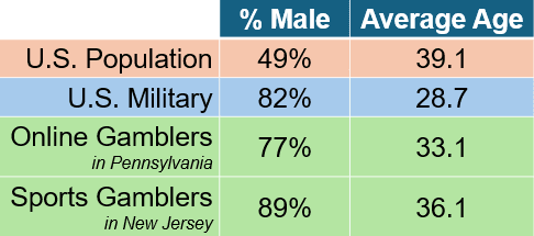 I would’ve much preferred to use robust national data here, but it really doesn’t exist. There’s survey and polling data, but that had some pretty inconsistent answers on both gender breakdown and age. (On the age question especially, it was often broken into segments—say, 18-29 or 55+—that made it impossible to get an average or a median.) Furthermore, what Pennsylvania is measuring isn’t exactly the same as what New Jersey is measuring. In Pennsylvania, the data is looking at online gambling, not just sports gambling—their online gambling extends beyond sports and includes online slots, among other things, which is frightening. In New Jersey, the data only looks at sports gambling and doesn’t break down online vs. in person by the demographic data I needed here. So this is as good as we’re going to do. I’m sure the data varies a little from state to state, but I doubt it varies by that much. In any event, this tells us what we’ve already known: that young people, men, and young men are by far the most likely to be gambling online and gambling on sports. 6 And that’s before you get to any issues specific to our Armed Forces and veterans. I would not be surprised if the same traits that lead people to join the military are correlated with problem gambling, nor would I be surprised if the experiences that people face in the military lead to more problem gambling. Substance abuse, after all, is more common among veterans than in the general population. 7 It’s unusual that sports gambling is becoming less popular as it’s becoming more legal. Contrast this with marijuana: support for legalization has steadily grown as it’s become legal in more states. 8 The reason this figure is below 50%: more members of our military are stationed in California than anywhere else, and online gambling isn’t legal in California. |