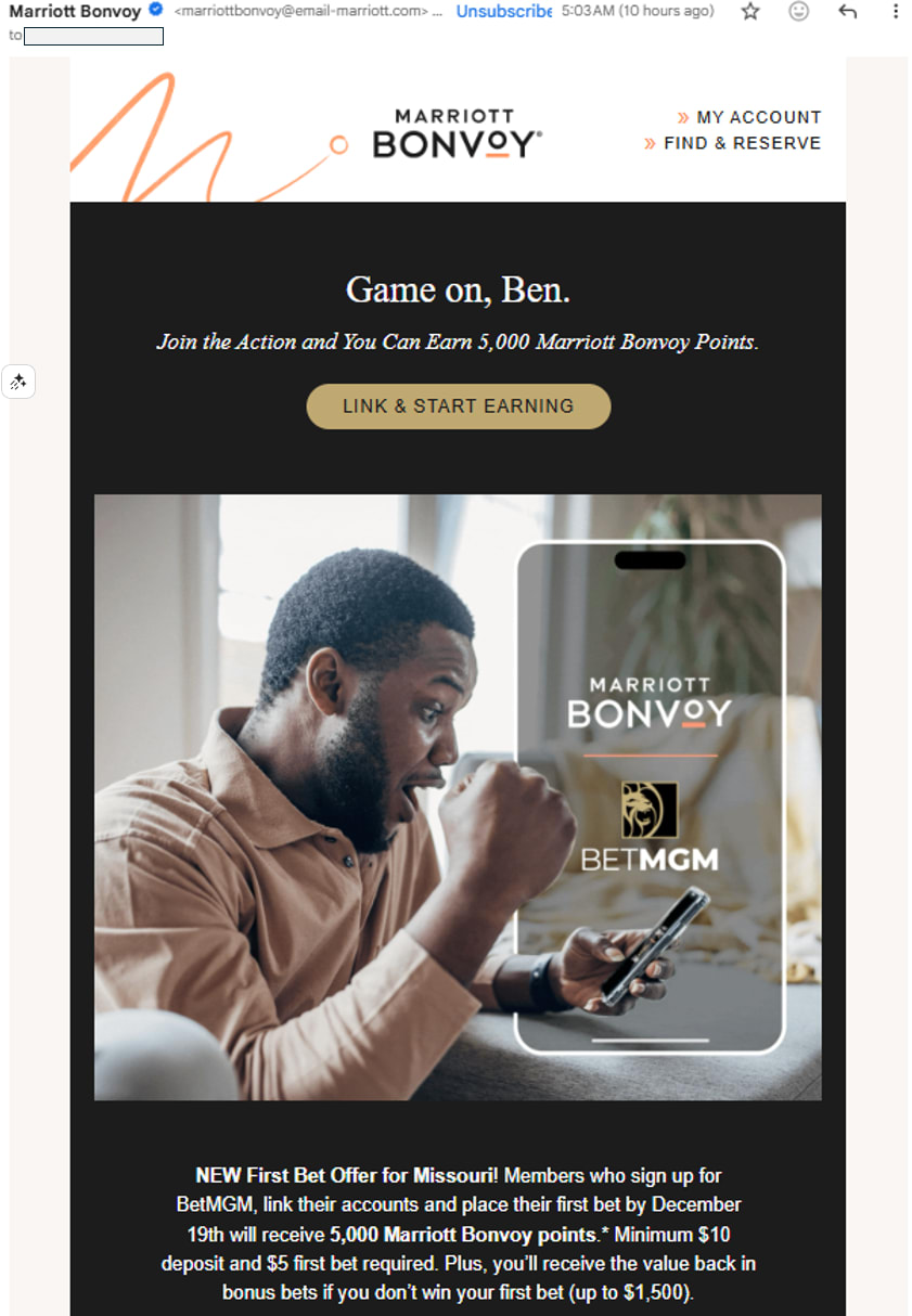 2 Driving down I-64 yesterday, I saw at least a half-dozen sports gambling billboards, including this one right before the Tower Grove Ave. exit: Sorry for the blurry image; it comes from my dash cam. It’s a DraftKings ad that reads “Provel and parlays that hit the spot.” Can someone explain what on earth that means? Does DraftKings serve Provel somewhere? I get that Provel is a St. Louis thing, but does that have anything to do with parlays? As far as I know, Imo’s isn’t into sports gambling (yet?). This seems like some AI-generated nonsense where someone in DraftKings marketing plugged “generate a billboard ad that combines sports gambling and St. Louis culture” into ChatGPT. 3 Here’s the ad, if you’re curious: Marriott points in the U.S. are worth about 0.69¢ each, so this promo is worth about $34.50. (All you have to do is make a $5 bet!) So once again, it tells you how much they’re expecting to make off of you over time. Everyone’s selling their soul on this issue. 4 Julie Roland and I wrote about women in the military last year: 5 Here’s where I’m pulling all of this data: