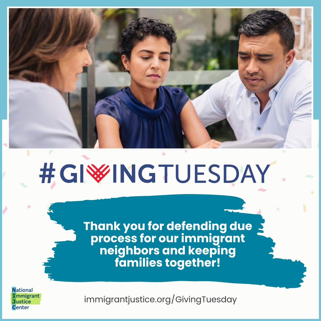 A special thank you to our matching donors, Gertrude Johnson and Kirkland & Ellis, whose incredible generosity doubled the impact of gifts made yesterday. The work doesn't stop here. While Giving Tuesday has passed, the urgent need for due process and justice continues every single day. Here's how you can stay involved: Stay informed: Follow NIJC on social media and watch your inbox for updates on our impact, ways you can help, and action alerts to protect our communities. Spread the word: Share NIJC's work with your networks and help us reach more people who need to know their rights. Together, we're building a community where every person—regardless of where they were born—has dignity, legal representation, and the due process they deserve. Thank you for being part of this movement for justice. With deep gratitude, Mayon Yen National Immigrant Justice Center P.S. If you weren't able to give yesterday, it's not too late to make a difference. Your donation today will still support our critical work defending due process. Give now at https://immigrantjustice.org/GivingTuesday. |