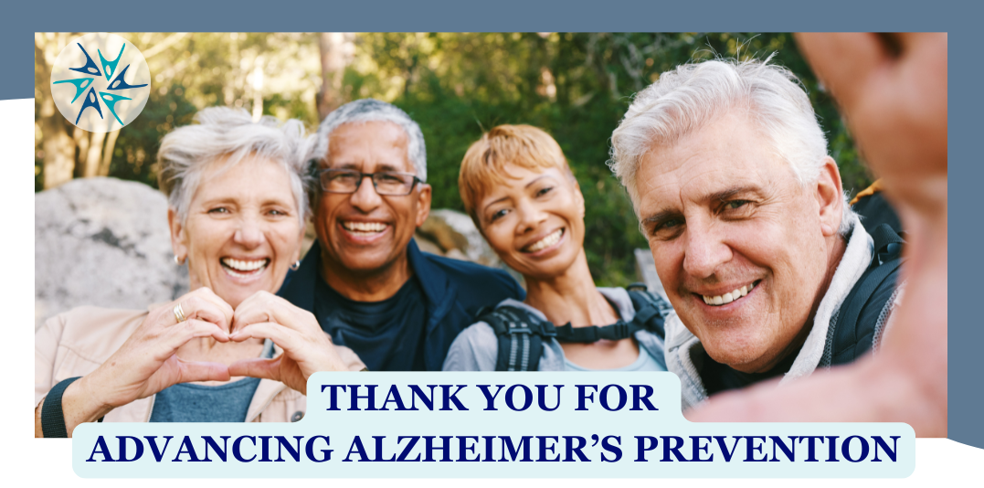 Thank you for your generosity and support this Giving Tuesday. With your help, we are advancing Alzheimer’s prevention research and empowering more individuals with evidence-based tools to protect brain health.