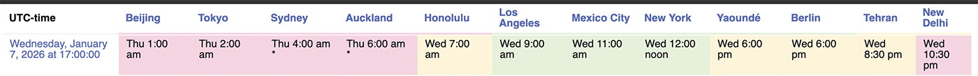 17:00, which is 7:00 a.m. in Honolulu, 9:00 a.m. in Los Angeles, 11:00