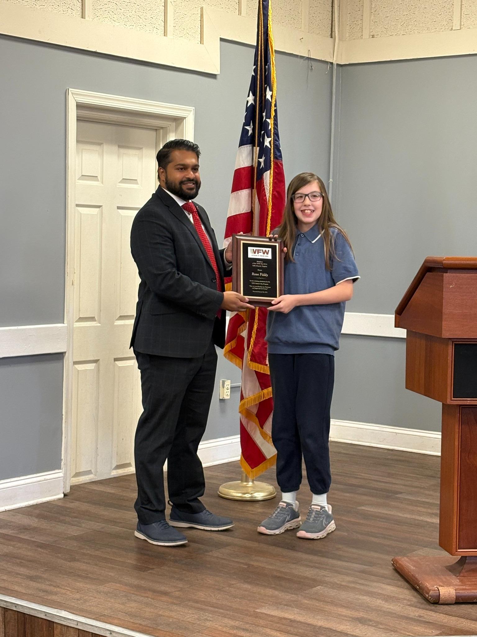 On Veterans' Day I was honored to join VFW Post 9274 and to present this Patriots' Pen award to Rosa for her winning essay titled "How I Show Patriotism and Support for Our Country." |