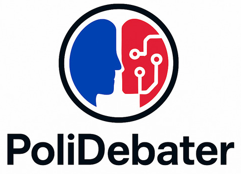 PoliDebater allows users to engage in political debate with an impartial large language model (AI). The user can select from a range of topics, and can set several settings for their debate, including their position (for/against), difficulty level of the AI opponent (beginner, intermediate, expert), number of rounds, first speaker (ai or user), and whether timed rounds are allowed and if so, how long the rounds should be. When the debate is over after the rounds are complete, the user can see several measures of performance including clarity, adherence to argumentative framework, and persuasion for both AI and them in a table that also displays who won in each of the respective categories. There is also a radar graph to make this information clearer. Finally, there is an AI generated feedback paragraph for both the AI debater and human debater, which is a concise summary of how each of them did. The user can always go back to the debate to review their messages. After the user is finished with the debate, they can generate a permanent shareable link so that anyone on the internet can view the debate's message history and AI feedback.