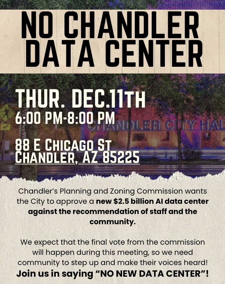 Join us and allies from across the valley in saying "NO MORE DATA CENTERS IN THE DESERT!"