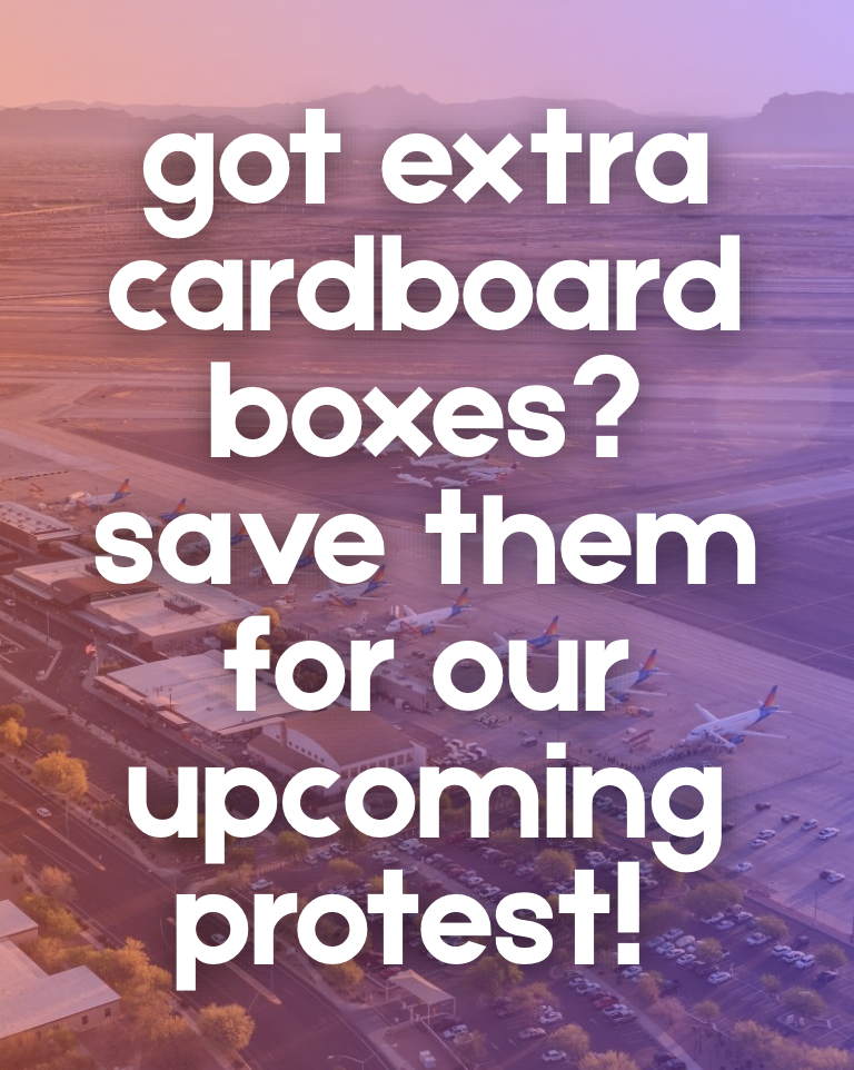 Sunday, December 14th we'll be doing our first "build day" for our protest puppet to be used in the January 24th protest and march against Avelo Airlines, and we'll need lots of cardboard, hula hoops, and craft supplies to make it happen!
