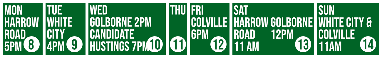 - Saturday 11:00 - Harrow Road - Maida Hill Market