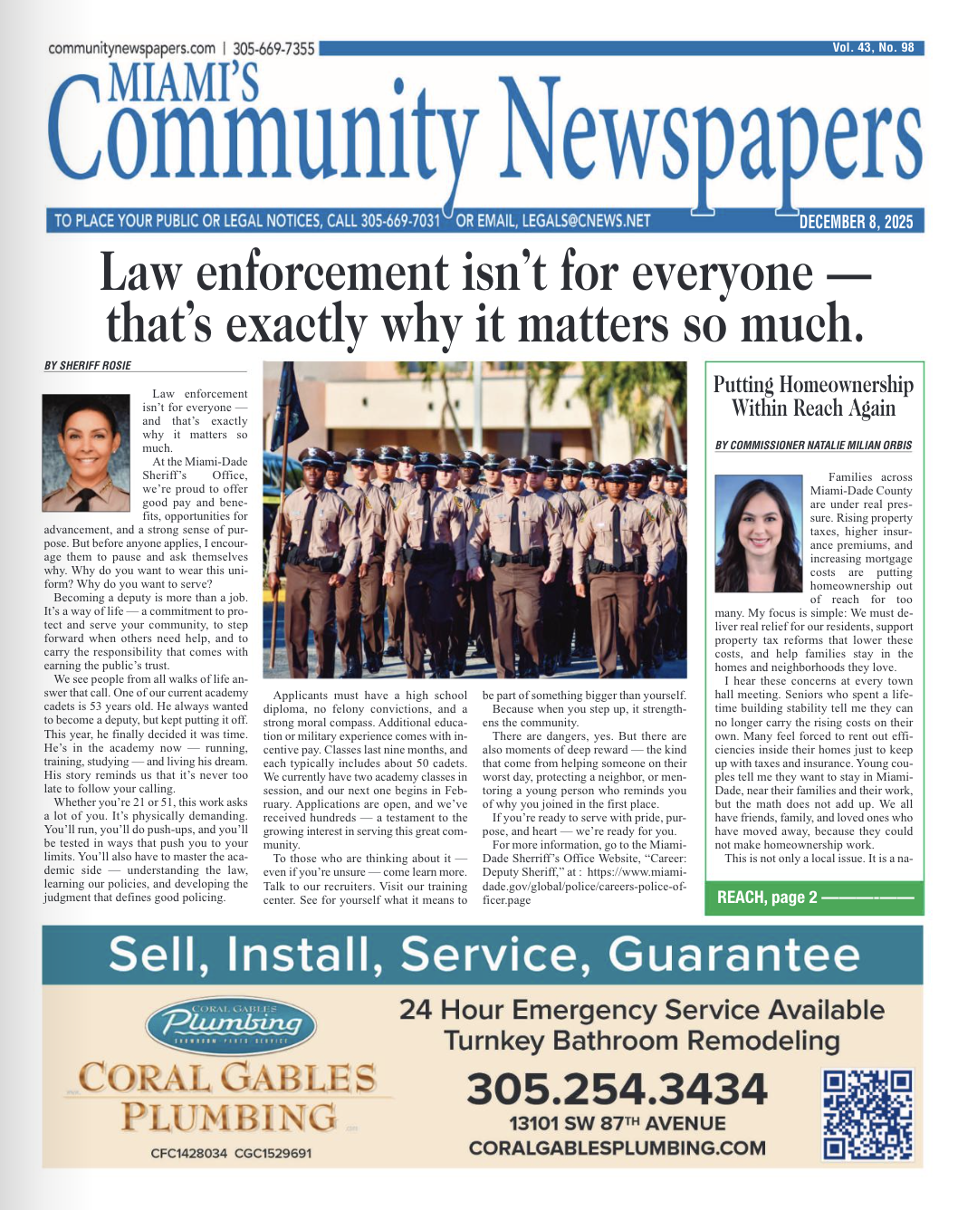 Law enforcement isn’t for everyone — and that’s exactly why it matters so much. At the Miami-Dade Sheriff’s Office, we’re proud to offer good pay and benefits, opportunities for advancement, and a strong sense of purpose. But before anyone applies, I encourage them to pause and ask themselves why. Why do you want to wear this uniform? Why do you want to serve?