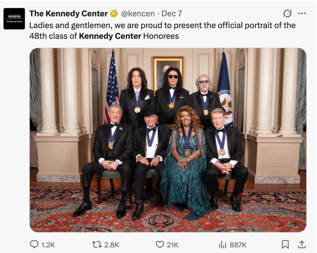 Star-studded honorees: The president celebrated Sylvester Stallone for his iconic “Rocky” and “Rambo” roles, disco legend Gloria Gaynor, rock band Kiss, British actor Michael Crawford, and country star George Strait, with Trump serving as Stallone’s ambassador to Hollywood and presenting awards in the Oval Office the previous day.