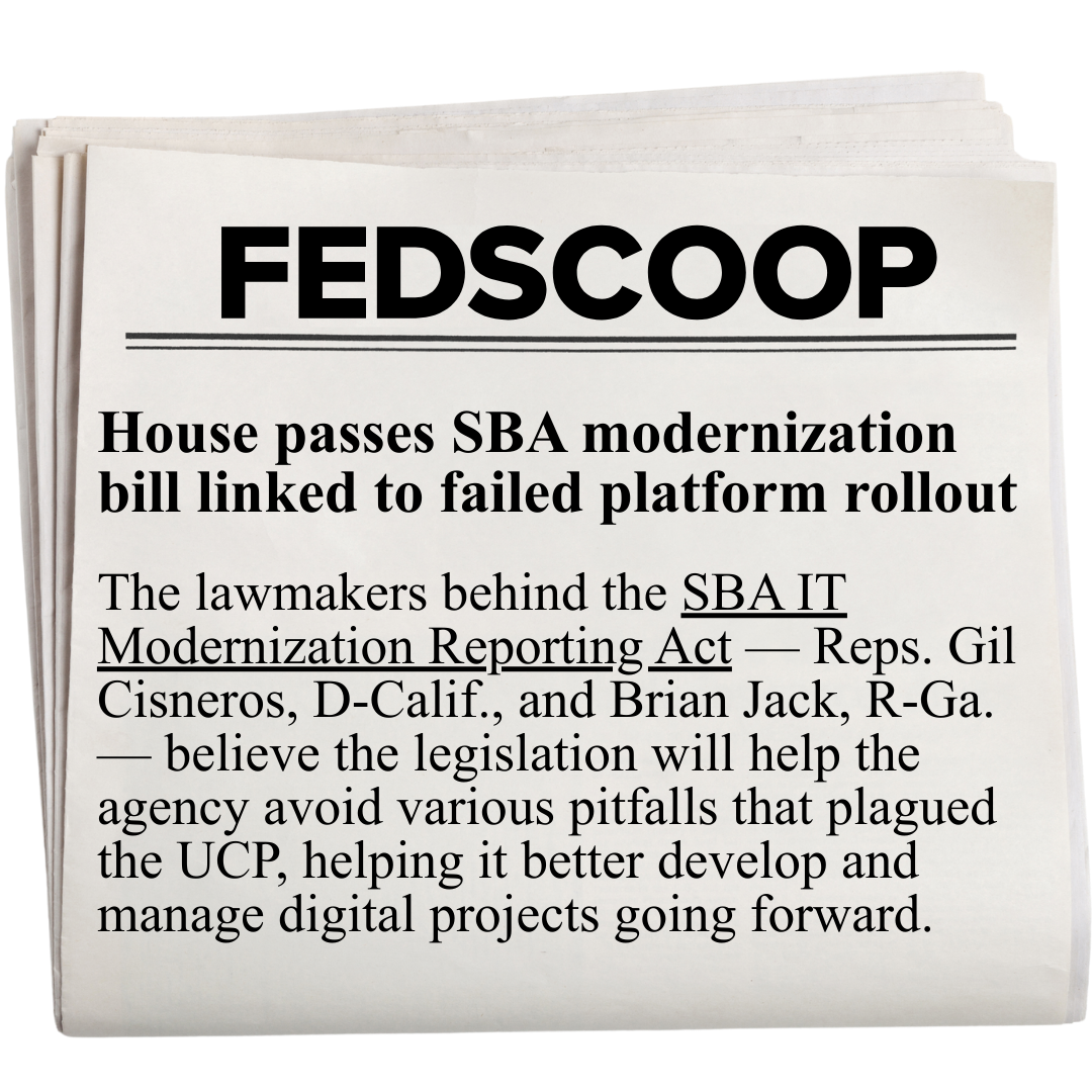 I am proud to announce the passage of my bipartisan bill with Rep. Brian Jack, the SBA IT Modernization Reporting Act. This legislation will enhance the SBA’s ability to develop, implement, and manage future IT modernization projects and strengthen how the SBA supports small businesses nationwide.