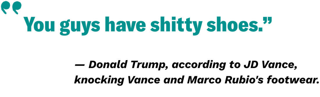 As long as Trump keeps telling Americans how they should feel about the economy instead of fixing it, Democrats have good reason to feel optimistic. BEST FRENEMIES?Donald Trump suggested that Democratic lawmakers should be hanged for urging military members to resist unlawful orders. But it turns out both Attorney General Pam Bondi and Defense Secretary Pete Hegseth have made that very same point bout ignoring illegal order in the past. In a friend-of-the-court brief in the Supreme Court last year, Bondi made her position clear, according to the New York Times. Ironically, the brief was filed in defense of Trump, after Supreme Court Justice Sonia Sotomayor argued that he could order Seal Team 6 to assassinate a political rival following the presidential immunity ruling. “Military officers are required not to carry out unlawful orders,” Bondi wrote. “The military would not carry out a patently unlawful order from the president to kill nonmilitary targets. Indeed, service members are required not to do so.” Hegseth made nearly identical remarks during multiple appearances on Fox News in 2016, CNN reports. “You’re not just gonna follow that order if it’s unlawful,” Hegseth said in one appearance. In another, he stated that “the military’s not gonna follow illegal orders.” Now, both Bondi and Hegseth are using their agencies to investigate these Democrats… for saying the same thing Bondi and Hegseth previously said. Hypocrisy, much? WHAT ELSE?Will a company founded by Trump’s son-in law soon have a stake in CNN? Alongside, perhaps, Saudi Arabia? That’s now a possibility, after Paramount announced a hostile takeover bid for Warner Bros. Discovery — involving Jared Kushner’s private equity firm and three middle eastern countries. Paramount argues that it’ll have an easier time securing regulatory approval than Netflix (without explicitly naming Kushner). Trump is also buddies with Paramount executive David Ellison, and he may feel inclined to hand Kushner a win after the 44-year-old’s recent peace dealings in Israel and Russia. Nepo baby!!! Donald Trump signed mortgages on two houses next to his Mar-a-Lago clubhouse in the 1990s, attesting that both would be his principal residence, according to ProPublica. But he never lived in either, the outlet reports, after his administration accused his enemies of mortgage fraud for claiming more than one primary residence. “He’s going to either need to fire himself or refer himself to the Department of Justice,” one law professor told the outlet. A White House spokesperson argued that there was no wrongdoing: “President Trump has never, or will ever, break the law.” The Supreme Court’s conservative majority appears likely to hand the Trump administration more power over federal agencies, by agreeing that he can fire members of independent agencies. A decision in Trump’s favor could allow him to transform institutions like the FTC, the Federal Reserve, and the Social Security Administration — which have been shielded from political interference for decades. Trump often vows to fight the flow of illegal drugs into the United States — but he has pardoned or commuted the sentences of nearly 100 people who were locked up for drug-related crimes. More than 10 of those took place during this term, and nearly 90 in his first. Trump announced that he plans to sign an executive order banning states from regulating artificial intelligence, weeks after his team reportedly paused the order. The move is guaranteed to anger state officials, including MAGA allies who have already spoken out against the order. But AI is supercharging the economy, and Trump doesn’t want states to get in the way. Rep. Marjorie Taylor Greene (R-GA) laid out in detail how Trump’s threats led to death threats against her family, in an interview on “60 Minutes.” “The subject line for the direct death threats on my son was his words: ‘Marjorie Traitor Greene,’” she explained. After Greene flagged these threats, Trump sent her a private message that “was extremely unkind,” she said. Trump continued calling her a “traitor” in a social media post today. LIGHT AT THE END OF THE EMAIL…Alina Habba, Trump’s handpicked top prosecutor in New Jersey, resigned after a court found that she was unlawfully appointed. It’s the end of a drawn out legal battle and another example of the courts holding strong against Trump’s overreach. “This decision will not weaken the Justice Department,” Habba wrote in her resignation letter. Yeah, no shit it won’t! Jurors in the Sandwich Slinger trial dished new details about just how dumb the whole case was to CBS News. One juror said that people in the courtroom struggled to “keep a straight face,” explaining that some openly laughed. Another juror told the outlet: “It seemed to me like an open-and-closed type of thing.” Open-faced sandwich, case closed. Former Canadian Prime Minister Justin Trudeau and American astronaut Katy Perry are now Instagram official. Perry posted a carousel of photos and videos on Instagram with her new lover, showing them eating sushi and pancakes, with the caption, “tokyo times on tour and more (◠‿◠) 🎄🍣🐡🥞💐☃️♥️”. The funniest part about this situation is that the former prime minister of Japan seemingly scooped the news last week, describing the pop star as Trudeau’s “partner” in a tweet. Critics of astrology often slander the practice by saying that there’s no evidence backing up sweeping claims about how the stars impact our personalities. The next time someone tries to cramp your style, you can show them this Washington Post article, which gathered tons of data about people’s occupations. There were some interesting conclusions: Farmers are more likely to be Capricorns, lawyers and creatives lean toward Taurus, financial aficionados are more often Virgos, and civil servants are often Cancers. Scientis