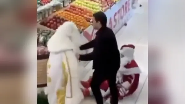 We get it. Christmas can be stressful if you're a parent. But imagine what it's like if you're Santa Claus! Let alone two Santa Clauses beefing over the same plot of land to spread Christmas cheer. It was on sight in the produce section when the yule tide rivals started throwing hands when their dispute couldn't be solved with words. Or even carols. Not even The Pogues' "Fairytale of New York," which makes everyone happy.