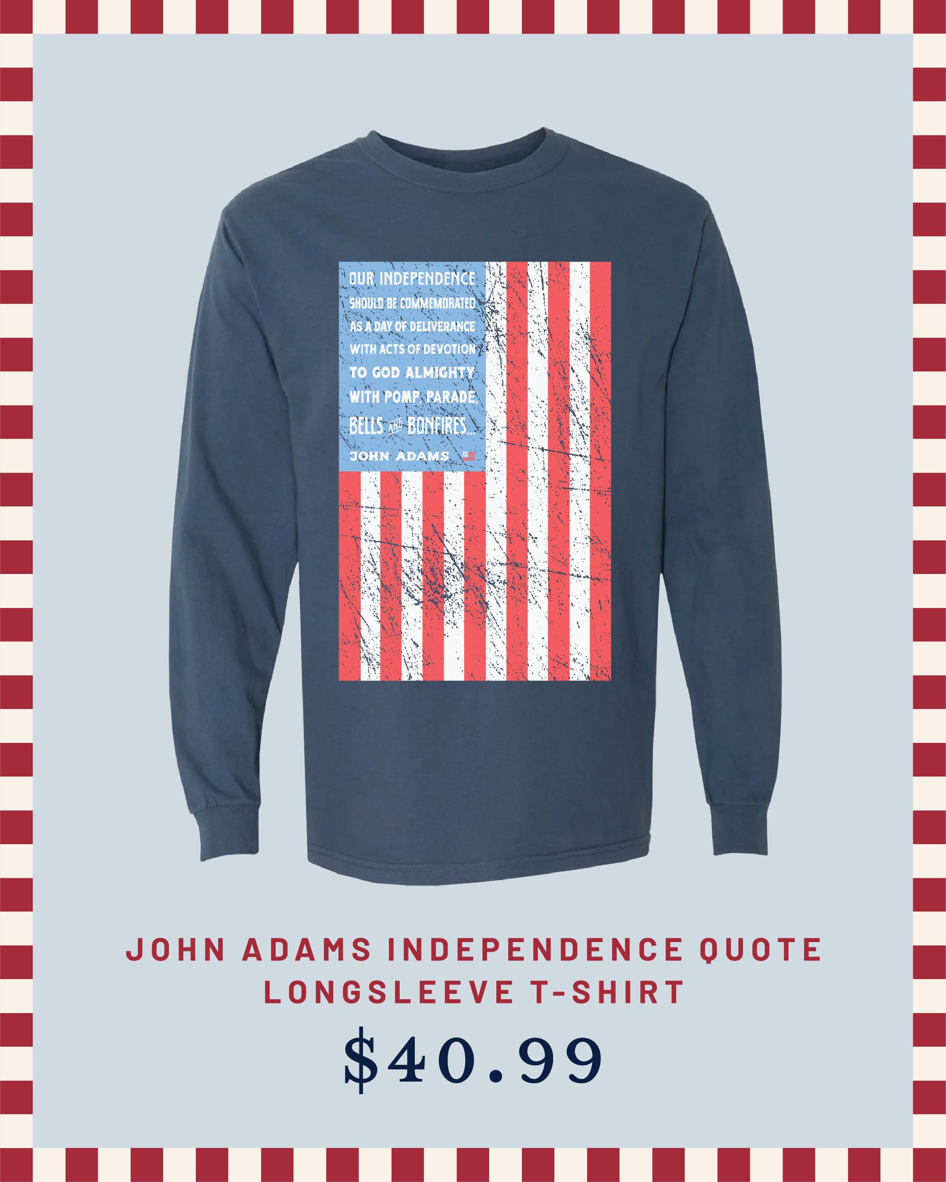 Now Back in Stock! John Adams Independence Quote Long Sleeve T-Shirt